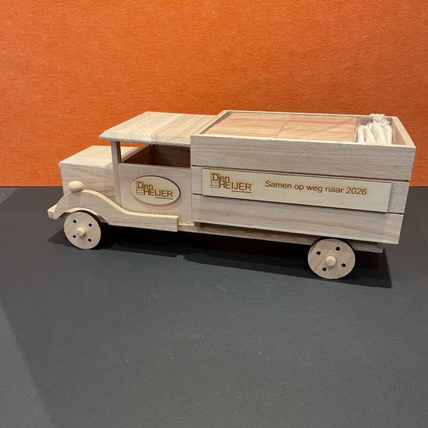 Wij personaliseren deze wagen voor je met tekst of logo.